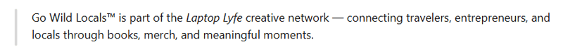 ☕ Go Wild Locals™ was created for travelers, dreamers, and curious souls who want to experience a place, not just pass through it.