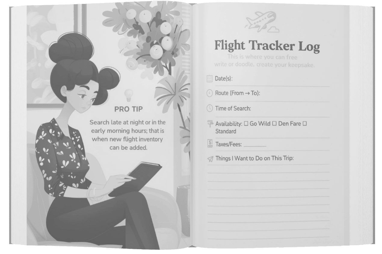 I created this book while planning my own adventures using Frontier’s Go Wild Pass — visiting best friends, exploring familiar cities in new ways and even booking a Bahamas cruise. All three trips happened within a five-week period — two of them lasting ten days each. It was a wild, whirlwind stretch of travel (with just enough downtime at home to reset and remember... there’s no place like home).